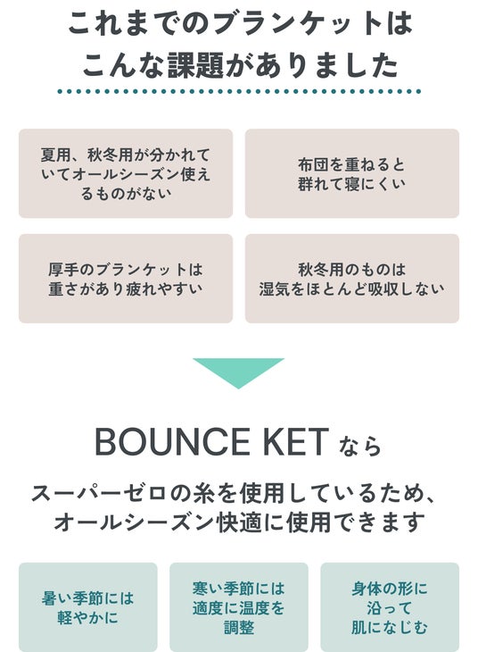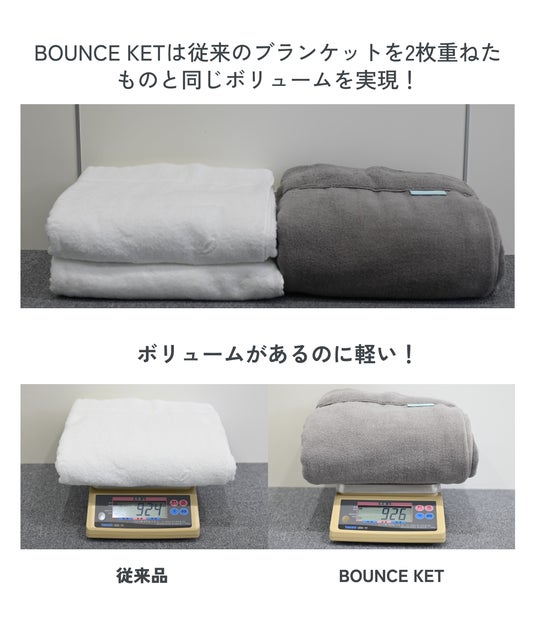 BOUNCE KETは、従来のブランケットを2枚重ねたものと同じボリュームを実現しました。