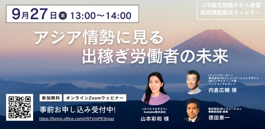 株式会社JWソリューション(本社所在地:東京都港区東新橋2丁目14-1 NBFコモディオ汐留 代表取締役:工藤洋)、JTB協定旅館ホテル連盟と共催で2024年9月27日(金)にウェビナー「アジア情勢に見る出稼ぎ労働者の未来」を開催いたします。