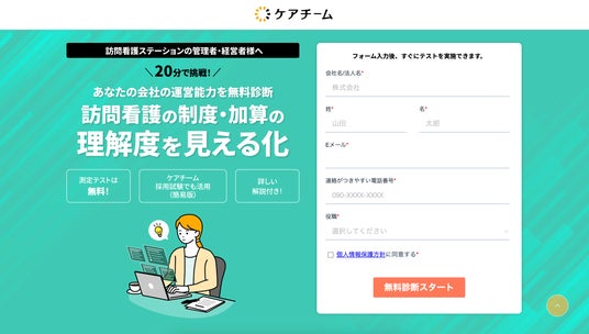 「ケアチーム 制度・加算理解度 測定テスト」LPページ