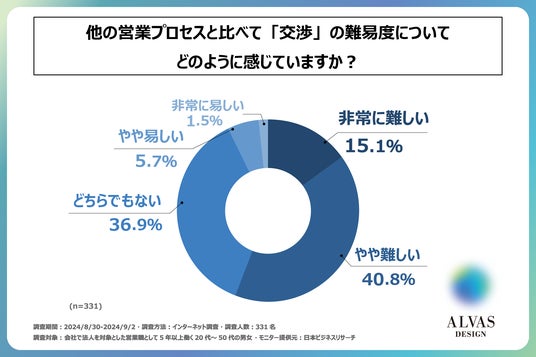 株式会社アルヴァスデザイン(本社:東京都港区、代表取締役 CVO:高橋 研)は、法人向けの営業職として5年以上働く20代~50代の男女を対象に「交渉」に関する意識調査を実施しました。この調査から、法人向けの営業職の方がビジネスにおける「交渉」をどのように考えているかが明らかになりました。