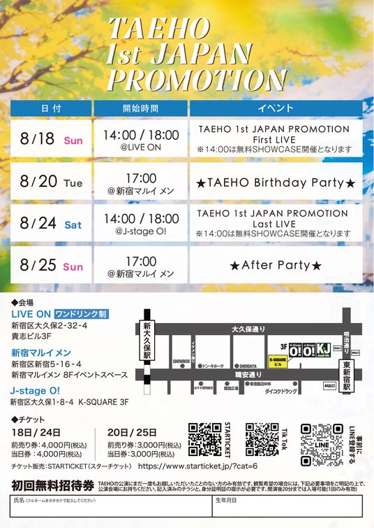 2024年8月18日(日) 14:00 / 18:00 ★TAEHO 1st JAPAN PROMOTION First LIVE★
