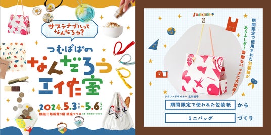 子育てファミリーを中心に、SNS総フォロワー150万人を超えるクリエイター『つむぱぱ』がSNSを飛び出し、『サステナブルに工作で楽しく触れる』がテーマの親子ワークショップイベント『なんだろう工作室』を、2024年5月3日(金)から5月6日(月)のGW4日間で銀座三越にて初開催。いま社会全体が、脱炭素社会の実現や持続可能な開発目標(SDGs)の達成に向け動いている中で、各家庭や子どもたちに向けてのメッセージやアクションのきっかけを届けます。