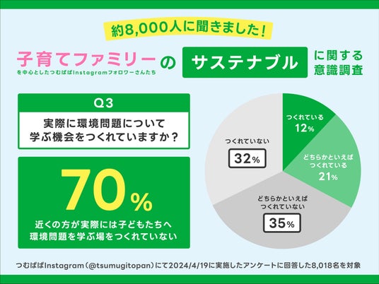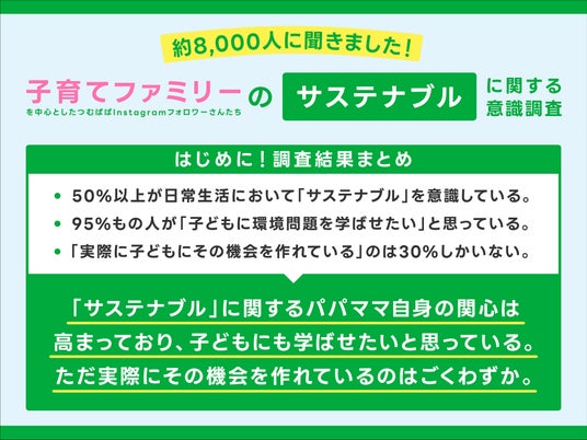 世の中のファミリーの多くが「子どもに『サステナブル』に触れさせたいのにその機会がなくできていない」ということがアンケートで判明。