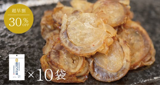 2023年8月に中国が日本の水産物を全面的に輸入禁止したことで、輸出用として生産していた帆立の行き場が無くなり、在庫過多の状態が続いています。このような状況下で、帆立を今までにない工程で美味しく加工して、国内での消費を増やせないかという気持ちから新商品の開発を行いました。1世紀を超えて小魚珍味からサキイカなど水産物の加工品を製造してきた技術と経験をもとに、帆立の旨味を凝縮させた【新しい】珍味が生まれました。