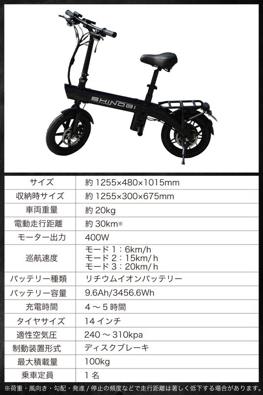2.400Wの強いトルクで坂道スイスイ。最大積載量も100kg。1回の充電で最大30km走行可能