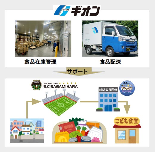 これらの実現において、市内最大の総合物流会社である、株式会社ギオン様およびサッカーJリーグ・J3チーム『SC相模原』のご支援により、地域のフードドライブにおける食材の集荷・管理・配送サービスの無償支援を賜り、さらなる活動の拡大を図って参ります。