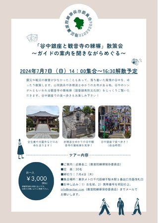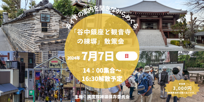 廣度院練塀保存委員会では、浮世絵に描かれた江戸の街に欠かせない存在であった『練塀』の現存する場所や、かつてあった場所を巡る東京歴史ツアーを開催しています。