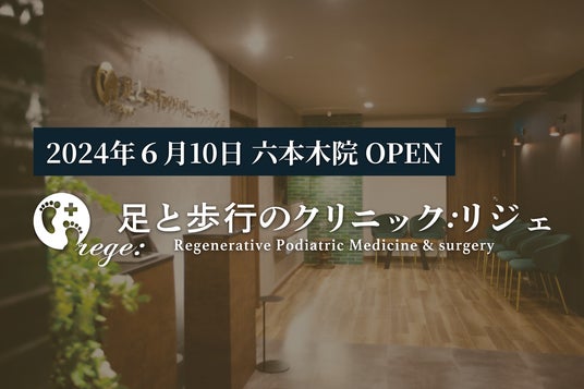 「“歩けない”をなくしたい」をコンセプトに、歩行障害や足の病気を専門に治療するとする“足と歩行のクリニック”は、2024年6月10日(月)に新ブランドとなる「足と歩行のクリニック rege 六本木院」(東京港区、院長:戸原 遼 以下六本木院)を開院しました。