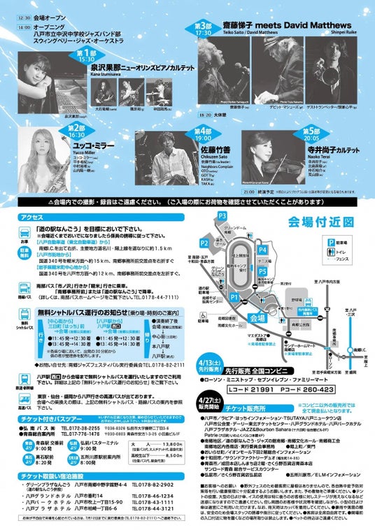- 問合せ先:南郷ジャズフェスティバル実行委員会 事務局(八戸市 総合政策部 南郷事務所内) [住所] 青森県八戸市南郷大字市野沢字黒坂 11-10) [電話] 0178-82-2111 [FAX] 0178-82-3517 [Mail] nango@city.hachinohe.aomori.jp