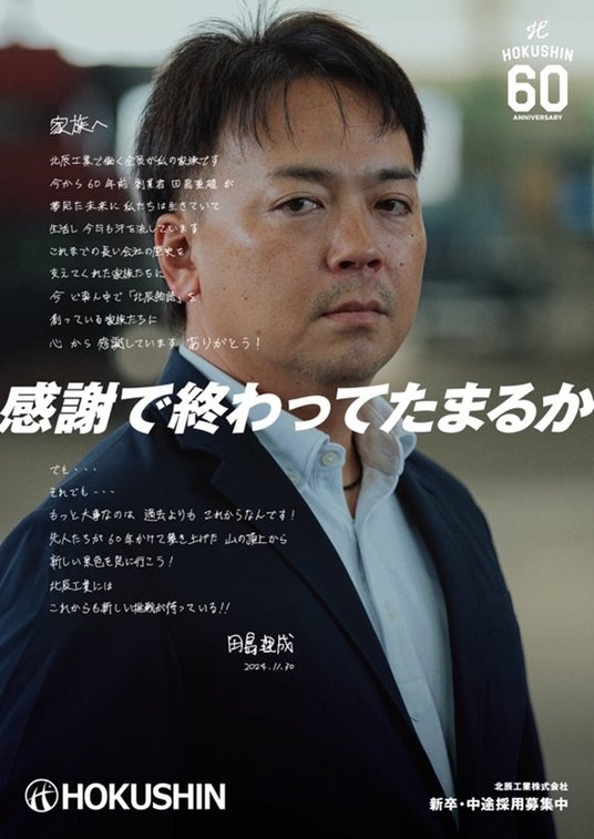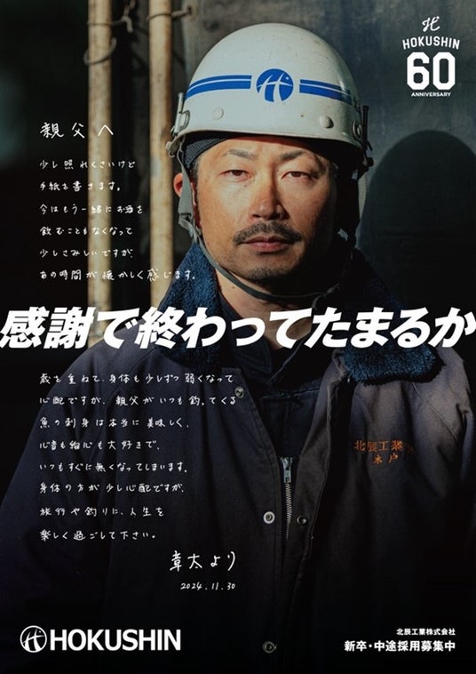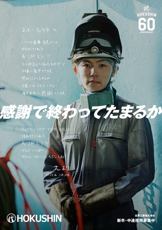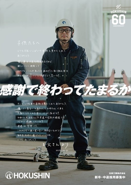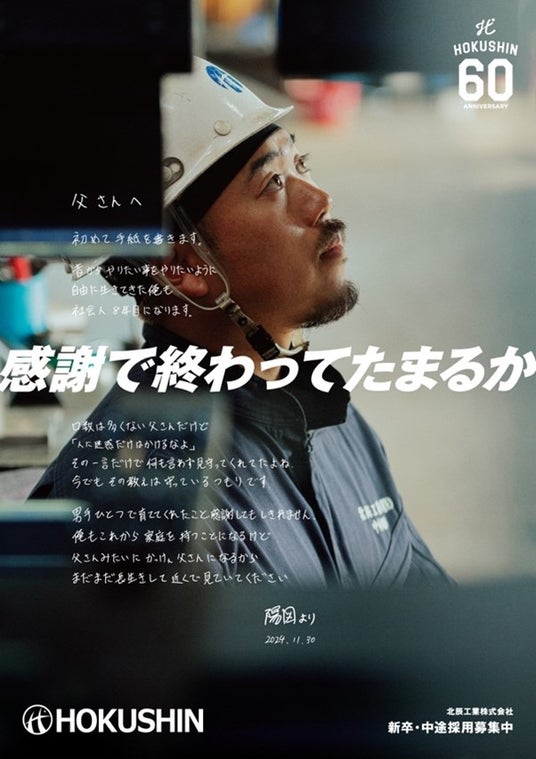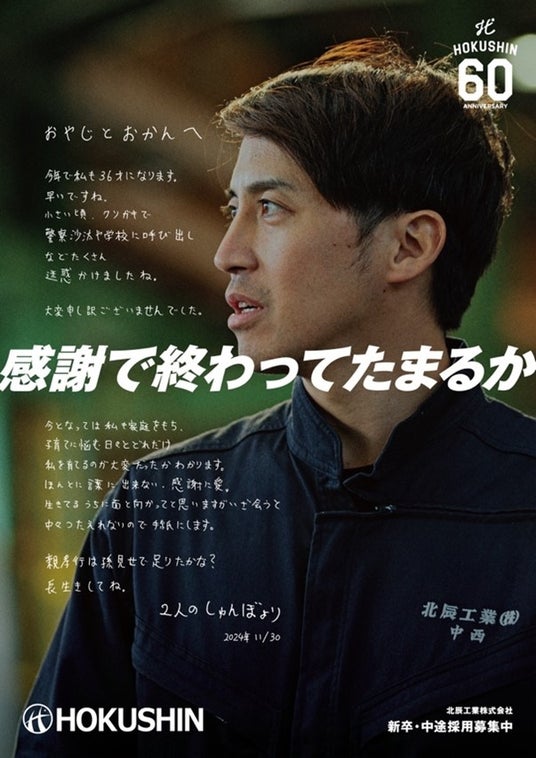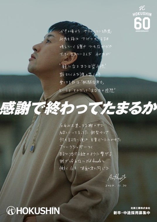北辰工業(所在地:〒039-1165 青森県八戸市石堂4-15-8)は2024年12月1日の創業60周年を記念して新卒・中途採用募集の広告キャンペーンを展開。フリースタイルラップバトルで優勝経験もある青森県出身の実力派ラッパーAuthority (オーソリティ)を起用し、これから働こうとする人たちの気持ちを後押しするオリジナルラップを披露。同ラップを使ったTVCM、WEB MOVIE、シリーズポスター14種を12/23(月)より公開します。