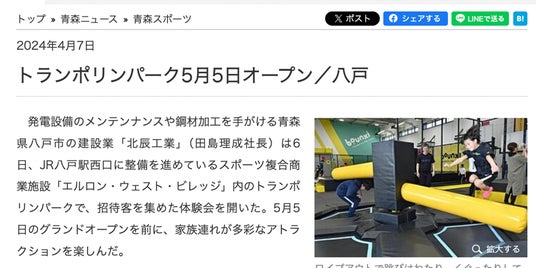 北辰工業は2024年に東北最大級のトランポリンパークをオープンし各種メディアで話題に!