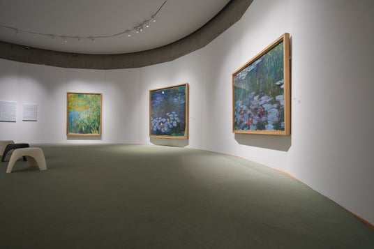 円柱型の展示空間に並ぶクロード・モネ《睡蓮》連作