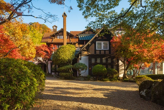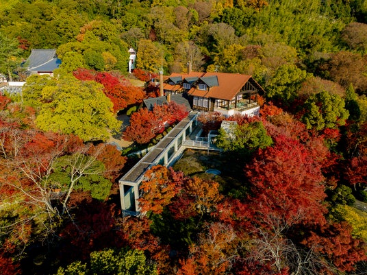 紅葉に包まれる大山崎山荘はまるで絵本の世界(撮影は2023年11月下旬頃)