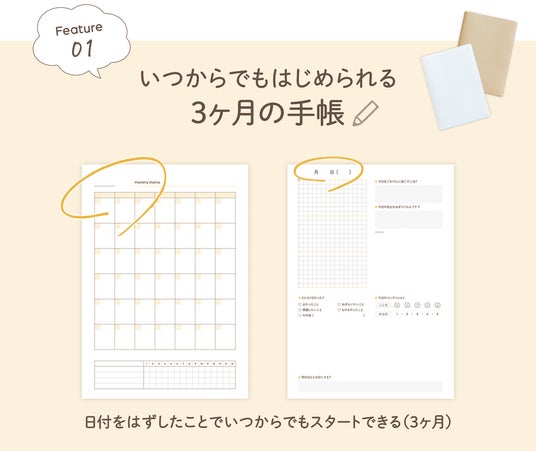 - いつでも始められる3ヶ月サイクルの手帳