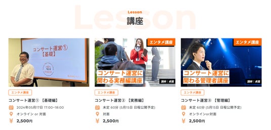 エンタメライブ、コンサートに関する講座です。イベント運営・コンサートプロモーター・大型野外フェス・チケット販売・舞台制作演出やコンサートの裏方にまつわるお仕事、映像制作やマーケティングなどあらゆる分野のエキスパートによる講座を開いていきます。