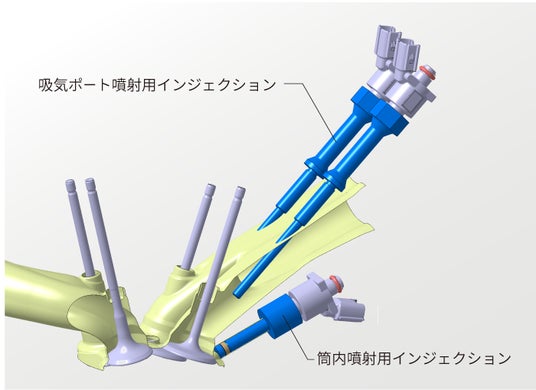 1. 吸気ポート噴射による筒内混合気の均質化と筒内噴射による高出力化