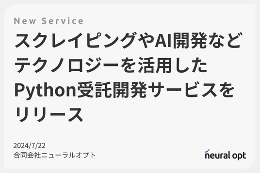 合同会社ニューラルオプト(代表 鈴木佑理、東京都渋谷区松濤2-12-7 107、以下、ニューラルオプト)は、2024年7月よりPython受託開発事業を開始いたしました。
