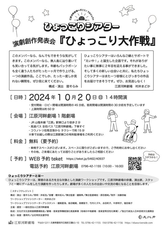 江原河畔劇場へ行こう!プロジェクト ひょっこりシアター2024 演劇創作発表会『ひょっこり大作戦』