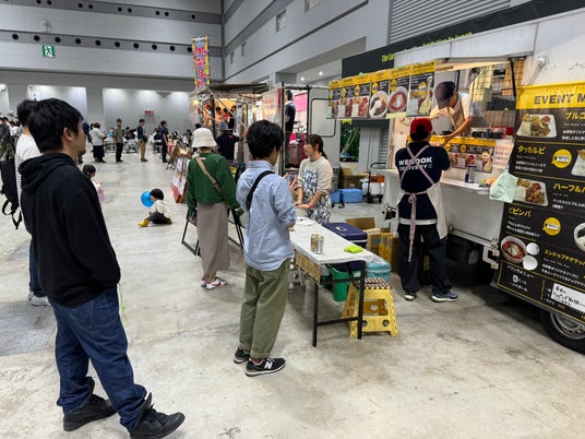 会場内にはキッチンカーも出店し、食事や休憩をとることも出来ます。お子さん連れも心配ありません。