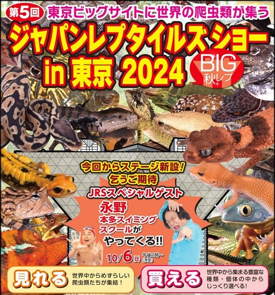 有限会社レップジャパンは2024年10月5日(土)~6日(日)に、「ジャパンレプタイルズショーin東京(BIG秋レプ)」を開催することをご報告いたします。報道関係者の皆様におかれましては、ぜひご掲載・お問い合わせのほど、宜しくお願い申し上げます。