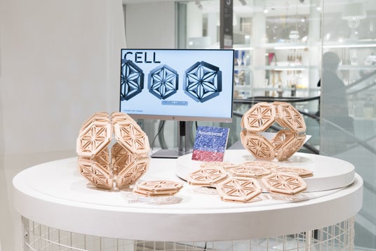 「CELL」は、本プロジェクトの一環として、伝統的な技術を活かしながら、現代のニーズにこたえた製品を製作する「江戸組子 建松」と、「粋」をさまざまな視点から探求し「粋」の宿る木工技術「組子」を通じて「真の豊かさとは何か」を問うクリエイター「MAI SUZKI」のコラボレーションブランドです。