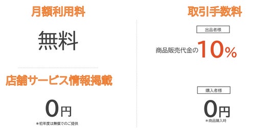取引手数料として商品販売代金の10%を出店企業より頂戴します。