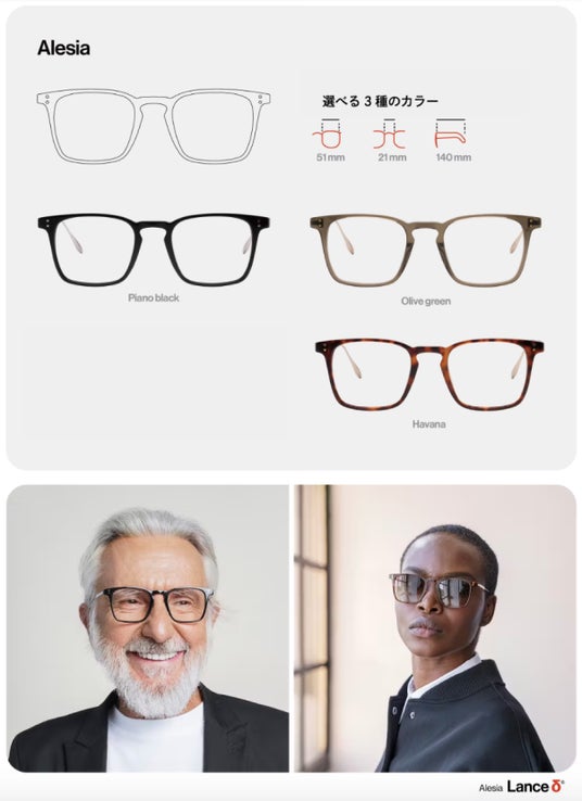 Alesia:「アレジア」は高品質のHDアセテートとチタニウムを巧みに組み合わせることで、アレーシアは個性的で目を引く外観を実現しました。耐久性と快適さを提供するだけでなく、製品に高級感をもたらしています。