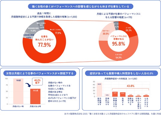 ※1 あすか製薬株式会社 (2025).「働く女性を対象とした月経随伴症状のセルフケアに関する実態調査」. https://www.aska-pharma-hd.co.jp/LinkClick.aspx?fileticket=3HMyU%2FjIgXQ%3D&tabid=199&mid=759