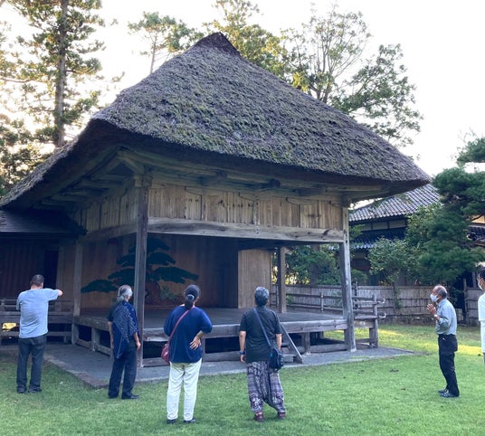 武井熊野神社の能舞台では、能楽の謡や仕舞を学び、能の世界を体験した後、新町大神宮で川野名さん座長の「真明座」の人形芝居を観賞し、人形の動かし方や歴史を学びます。さらに、わら細工を通じて縄を綯い、草履や鍋敷きなどの作り方を体験した後は、佐渡の美味しいお米を育む田んぼの見学をし、五穀豊穣を願う鬼太鼓のレクチャーを受け、太鼓と舞を体験します。