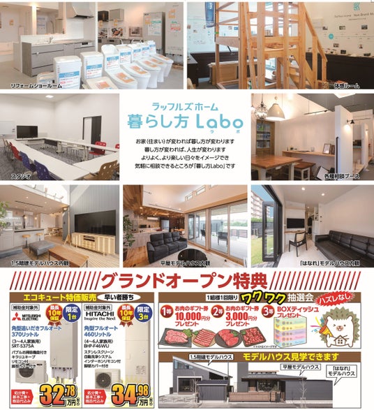 2024年9月、創業69年の老舗工務店・ラッフルズホーム株式会社(本社:徳島県徳島市東吉野町2-45-9、代表:金原 建雄)は、徳島市金沢1丁目にショールーム「暮らし方Labo(くらしかたラボ)」を新規オープンさせます。来年70周年を前にリブランディングを実施し、ロゴマークやイメージカラーを刷新するだけでなく家というモノの提案から「暮らし方」全般をトータルデザイン提案する拠点として誕生します。また、9/21(土)・22(日)・23(月・祝)には豊富な特典を用意したグランドオープンイベントを開催いたします。