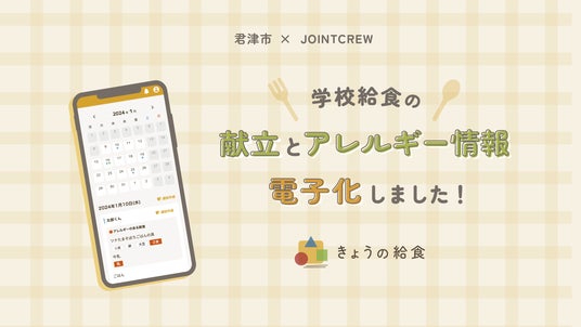 株式会社JOINT CREW(本社:東京都千代田区、代表取締役社長:村越 了、以下JOINT CREW)は、「日本の子供たちを笑顔にする」というビジョンの実現に向け、自社のBaby Tech事業の新規サービスである、「きょうの給食」のβ版をリリースしました。