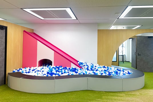 さらに「ボールプール×滑り台×Yogibo」という従来のオフィス概念とはかけ離れた遊び心満載な斬新な空間を"社員が集まる場"にすることよって、新たに入社する社員との掛け合いをイメージしました。