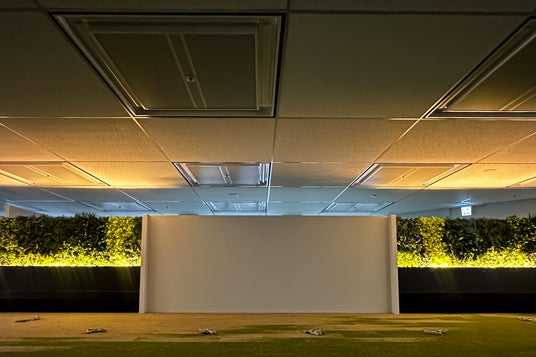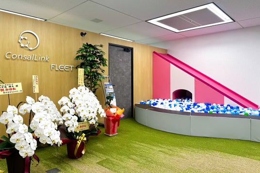 壁一面のグリーンウォールやカフェスペースのような大階段、約5万個のボールが入ったボールプールに滑り台やYogiboなど、従来のオフィスという固定概念を覆すようなアイテムを数多く取り入れた斬新な空間が特徴です。また社名である「ConsalLink」と書かれたロゴ支柱をスタイリッシュに日常に取り入れることでメンバーの所属感を高めることに繋がります。さらに、大階段の向かいにスクリーンを配置したことにより、社内イベント・社員間のコミュニケーションをより促進させ、移転の目的である"社員が集まる空間"を実現させます。