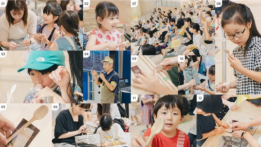『大阪の森の木でスプーンを作ろう!』ワークショップ。阪神梅田本店や阪急うめだ本店をはじめ、大阪各地域のイズミヤSCなどで計13回開催した。
