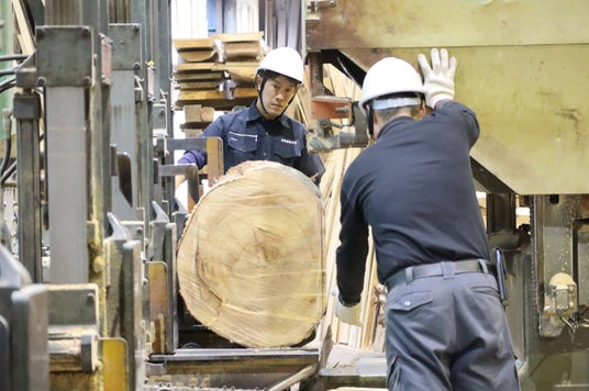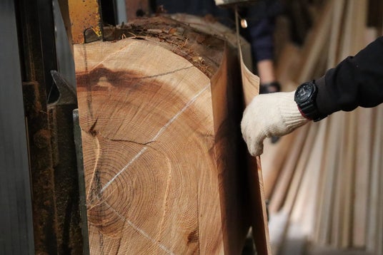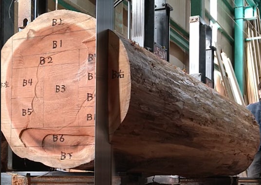一気に切ると樹が反るので、ミリ単位で製材。製材所の緻密な製材技術がこのデザインを支えています。