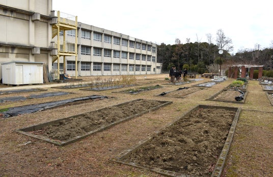 新檜尾台小学校の校庭の一角。昨年から校庭の空いたスペースにオリーブ畑をつくる活動が始まっているそうで、ぜひベンチも設置したい、とお声がけいただいた。