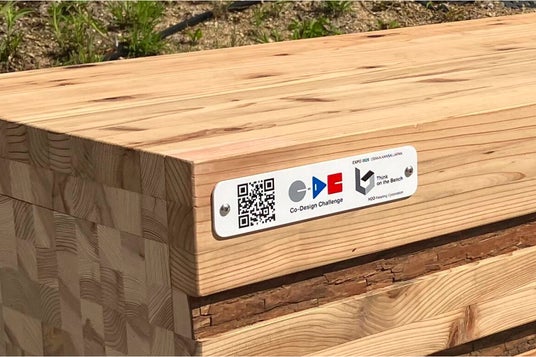 ・万博会場に設置されたベンチの二次元コードからプロジェクトサイトの記事が読める。