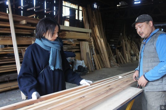 大阪府南河内郡太子町に拠点を置く田中製材所にて。丸太から製材した直後の木材。その後2週間乾燥させた。