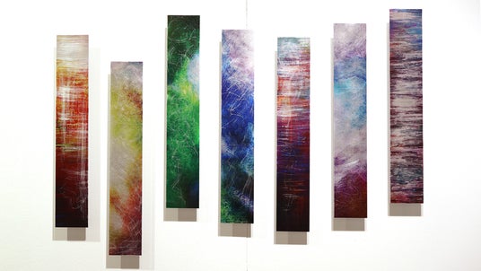 10×60cm×7本の作品《Seven Melodies》様々な異なる色合いと傷の描線が楽しめる