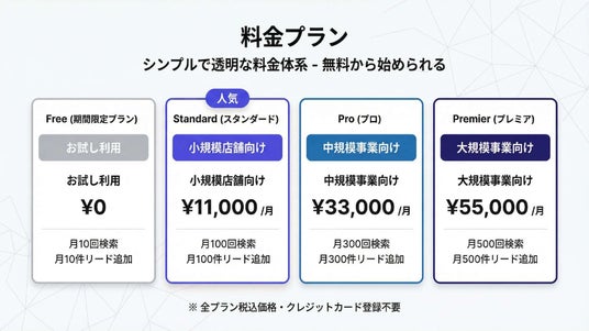 より多くの事業者様にご利用いただくため、無料でお試しいただけるプランから、事業規模に応じた有料プランまで、シンプルで透明性の高い料金体系をご用意しております。