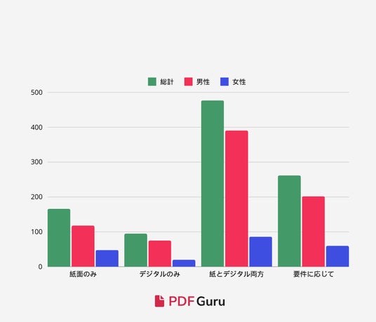 このデータは回答者の90%以上が何らかの形で印刷物の利用を継続していることを示しており、従来の慣習が今も浸透していることを浮き彫りにしています。