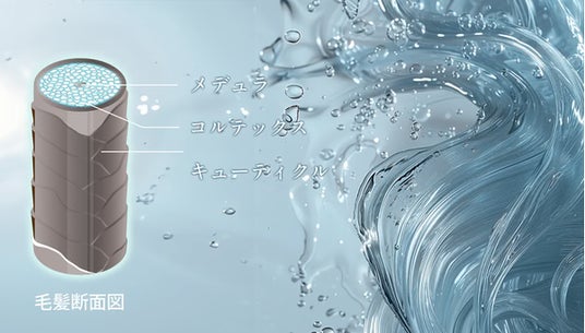 私たちが特にフォーカスしているのは髪の毛の内部の約85%~90%を占めるとされるコルテックス