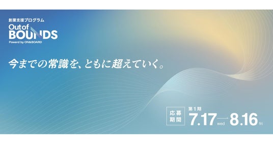 ON&BOARD株式会社(呼称「オンボード」、所在地:東京都港区虎ノ門、代表取締役:下平将人、中山航介 以下「当社」)は、7/17(水)から8/16(金)までの期間、創業支援プログラム・第1期「Out of BOUNDS(アウトオブバウンズ)」の参加者を募集しています。当社では、ベンチャーキャピタルとして社内で常時有望事業テーマの洗い出しを行い、創業の可能性を検証するスタートアップスタジオ機能を保有しています。