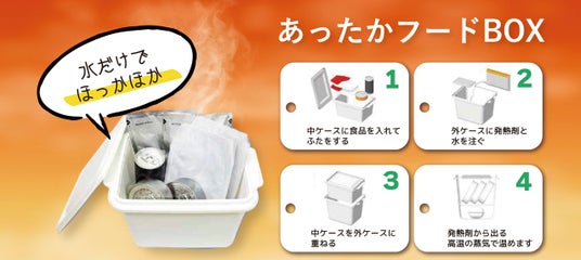 長期保存可能なレトルト食品と発熱剤、専用加熱容器をセットにした非常食のセットです。加熱に必要な水もセットにしていますので、どんな時でも温かい食事を用意することができます。専用容器内に発熱剤と食品とを一緒に入れられるので、必要なものがどこかに行ってしまうことを防ぎ、コンパクトにストックできます。