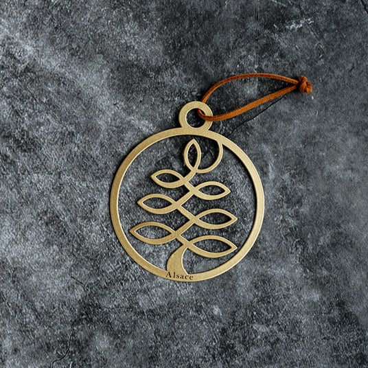 お洒落なアルザスのロゴと心温まるクリスマスのメッセージがデザインされている2種類のオーナメントが2つずつ、計4つのセットになった商品です。カラーはワインレッド・シャンパンゴールド・ホワイトの3色展開。どれも、そっと上品にツリーを彩ります。