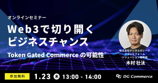デジタルコマースプラットフォームを提供する株式会社DGコマース(デジタルガレージグループ会社 /本社:東京都渋谷区、代表取締役社長:清水 和徳、以下:DGコマース)は、2025年1月23日(木)に無料オンラインセミナー「Web3で切り開くビジネスチャンス-Token Gated Commerceの可能性」を開催します。Web3の普及が進む中、これらの技術を活用して顧客体験を向上させる新たな仕組みとECビジネスへの展開について、事例も交えながら解説します。