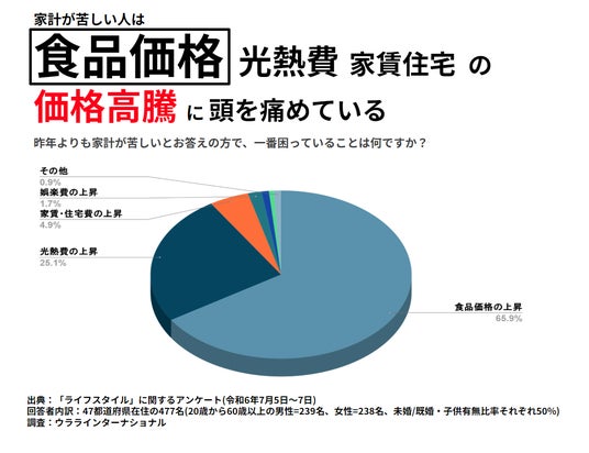国内外でデジタルマーケティング支援サービスを提供する株式会社ウララインターナショナル(本社:東京都港区、代表取締役社長 三田村穂世、以下「当社」)は、日本全国のユーザー約500名を対象に「物価高」と「家計」に関するインターネットモニター調査を実施しました。