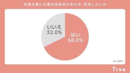 まずはじめに「所属企業に企業内保育所があれば利用したい」と答えた方は、全体の68%という結果になりました。