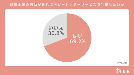 『ベビーシッターサービス』に関しては、全体の69.2%の方が、所属企業の補助があれば利用したいということが判明しました。