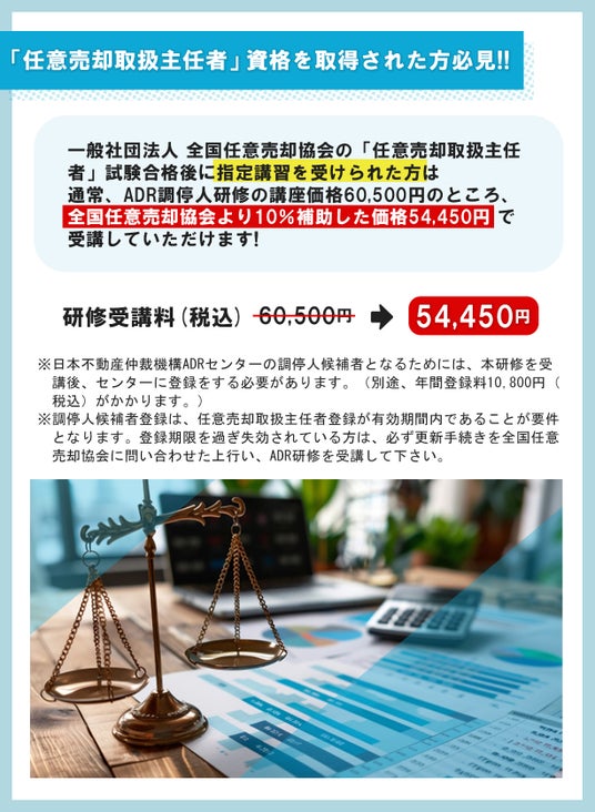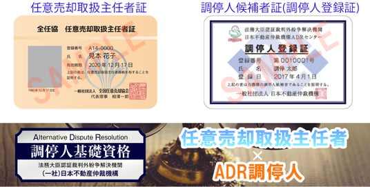 「任意売却取扱主任者」資格を取得後に、調停人候補者研修登録後、「ADR調停人」としてご活躍していただけます!!